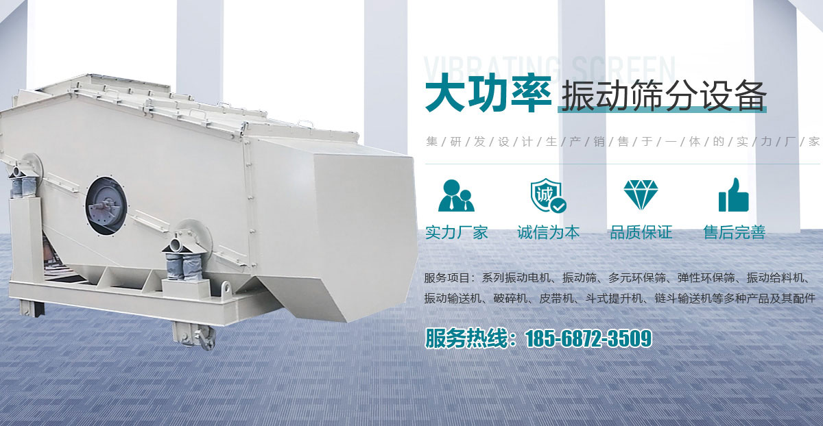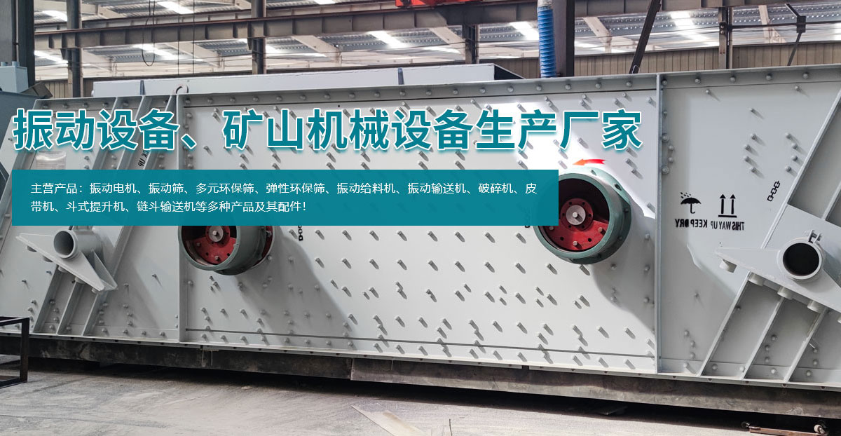 • 主要產品有系列振動電機、振動篩、多元環(huán)保篩、彈性環(huán)保篩、振動給料機、振動輸送機、破碎機、皮帶機、斗式提升機、鏈斗輸送機等多種產品